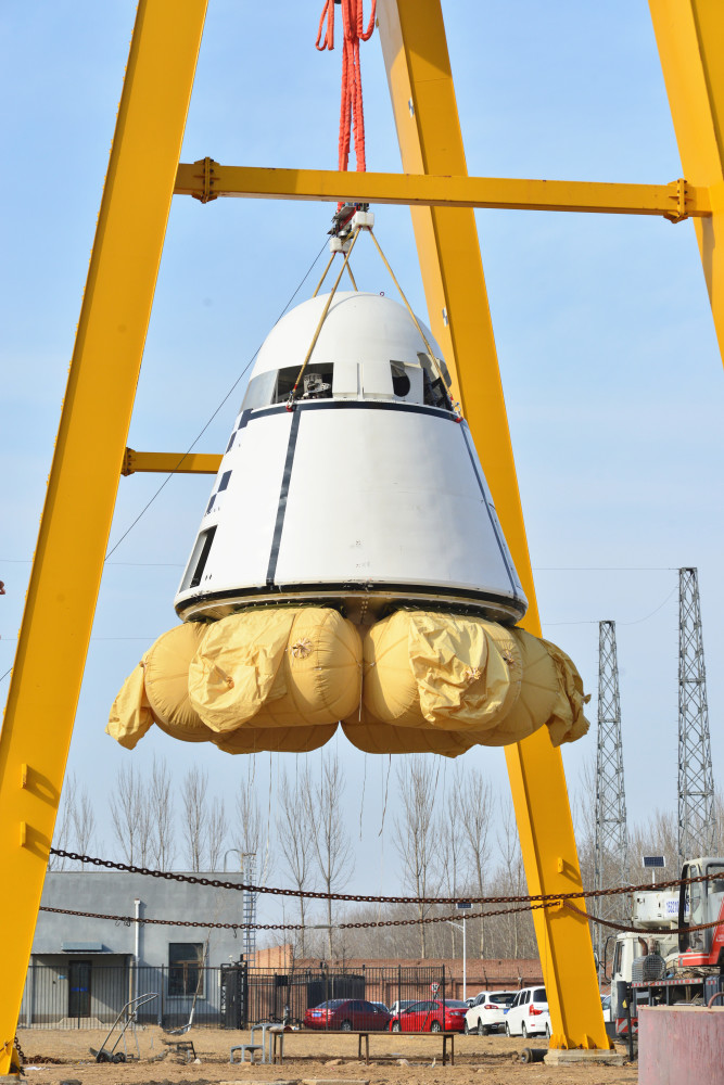 前期氣囊緩衝技術試驗現場。航天科技集團五院供圖