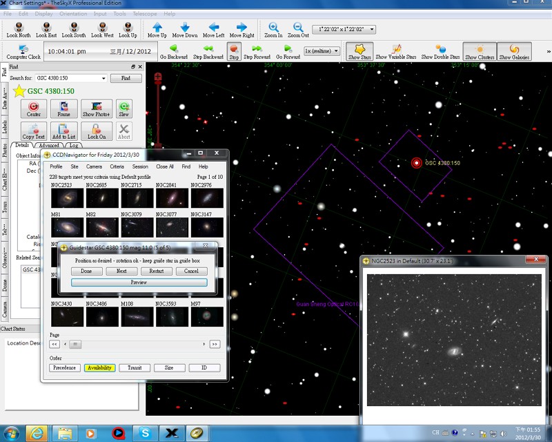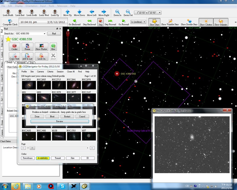 在這裡除了要先設定CCD及導星的FOV(由The Sky X中設定)