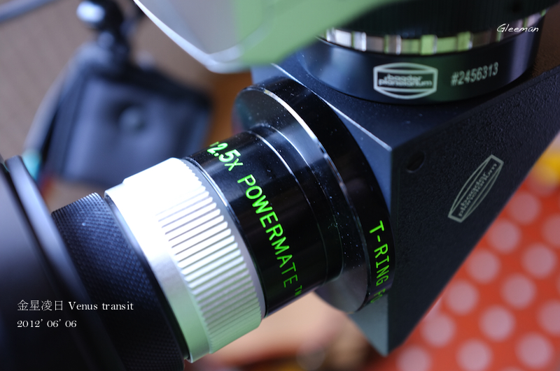 今天打算透過天文望遠鏡來進行兩種適合全家大小一起觀賞金星凌日的方法,一是擴大攝影的相機上的Liveview,另一種則是以目鏡擴大投影於太陽投影板。一開始是使用擴大攝影的相機Liveview來觀看。