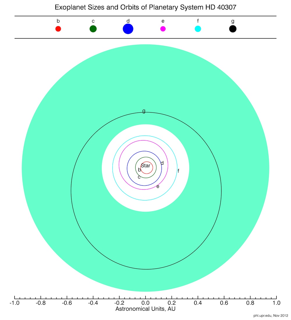 加上此次發現的這顆3顆行星之後,圍繞恒星HD 40307運行的,已經被確認的行星系統中的行星數量上升到了6顆。而此次新發現的這顆位於宜居帶的行星則是在全部6顆行星中引起最多注意的一顆,它的軌道也是最靠外側的。