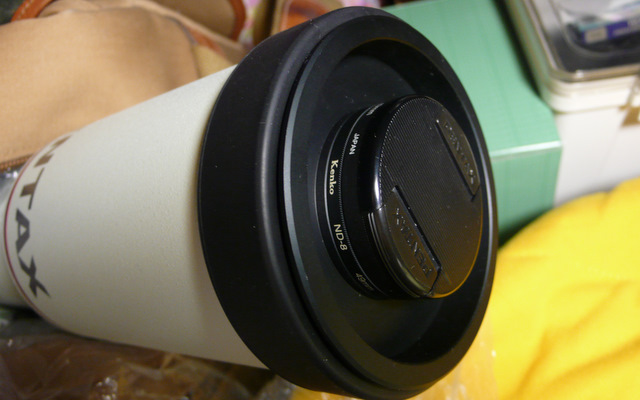 至於前面,因為我的p75遮光罩蓋子已經換成中間有49mm牙可以鎖濾鏡的蓋子了(買鏡子後不久就跟廠長買的),那顆solarmax H-alpha濾鏡後面有牙(M52x1),所以用轉接環就可以鎖在蓋子上(用49轉52就可以鎖,雖然牙距是0.75的,如果不放心,就要去定製一個M49x0.75轉M52x1的接環)。