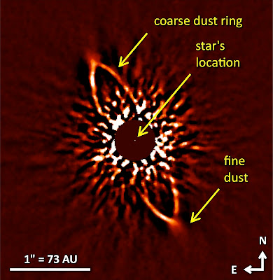 很可能這些行星形成環中最有趣的是環繞HR 4796A恒星的紅色殘骸盤,HR 4796A是一種異常緊密的嬰兒恒星系統。