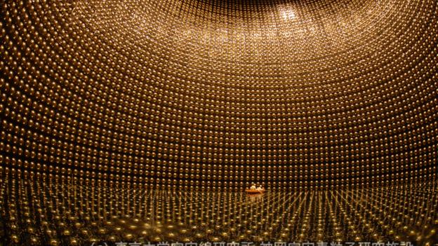 “超級神岡”探測器內景,這是一個巨大的地下中微子探測器