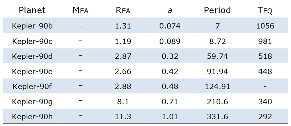 這顆恆星位在天龍座方向,距離我們2545光年。最新發現的第八顆行星稱為Kepler-90i,這是一顆炙熱的岩質行星,比地球大了30%,每14.4天就會繞行母恆星一圈,它與母恆星的距離很近,因此表面溫度超過攝氏426度,和水星的溫度差不多。而最外側的行星Kepler-90h繞行母恆星的距離,則與地球繞太陽的距離差不多。這個恆星系統就像是個迷你版的太陽系,內側的行星比較小,而外側的行星比較大,但所有的行星與母恆星的距離又都比太陽系近得多。