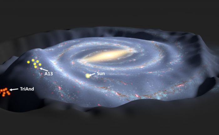 不過德國天文學家 Maria Bergemann的研究團隊在觀測當中恆星的 DNA:光譜後赫然發現,它們很可能也是銀河系原生恆星的一份子!因為這些恆星的重元素豐度遠高於銀暈中其他恆星,反而比較近似於銀盤中的恆星。更神奇的是,雖然 TriAnd 和 A13 相距 30,000光年之遙,但其恆星的元素豐度竟然高度相似,顯然兩者系出同門!
