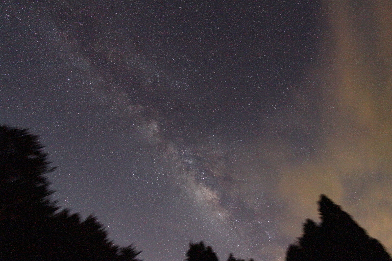 福壽山的露營區燈光還蠻多的,拍廣角銀河要慎選地點。夜遊的人們手電筒也是一個照片殺手。露營區北端的空地比較可能拍照,但是南天銀河則要越過燈光區...有些許松樹遮蔽。如果往上開500m到天池停車場,北方展望好,可望見思源啞口,但是南天有遮蔽,不利於拍銀河。