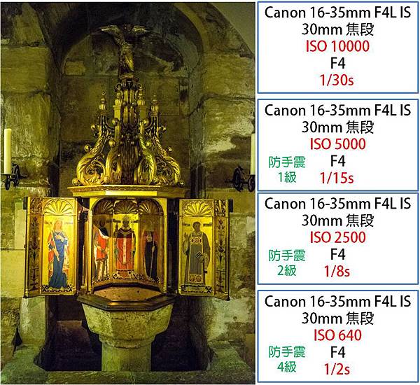 而 "1級" 防手震,則允許你採用 1/50s 快門速度,仍不至於晃動而模糊, 2 級防手震則是 1/25s ,4級防手震則是 1/8s,以此類推。