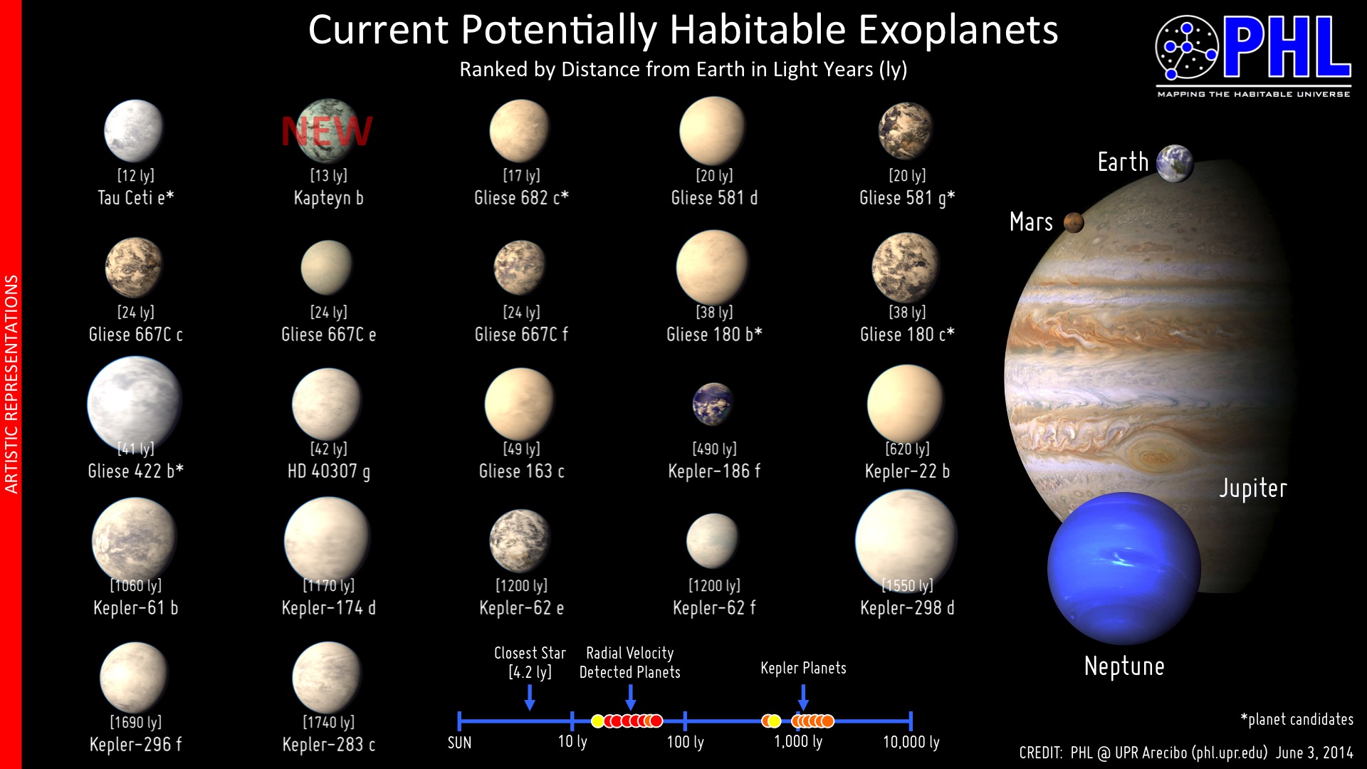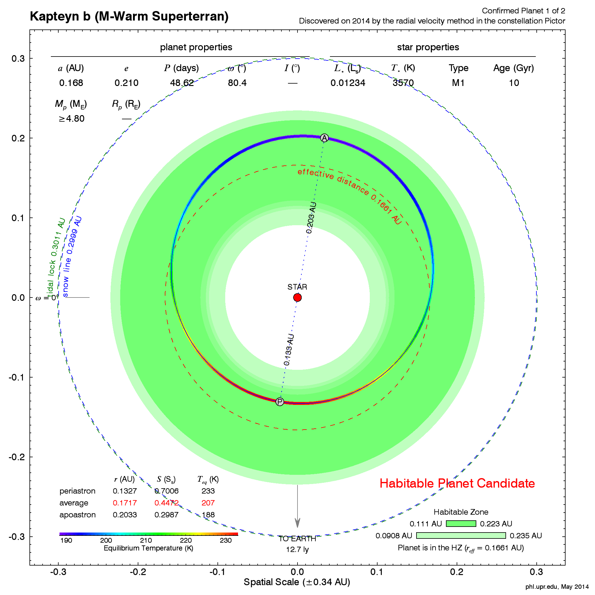應該是很多系外行星都靠太近太熱 , 但是 好像Kapteyn c 不在適居帶內, 最後補個不知道是否有水.