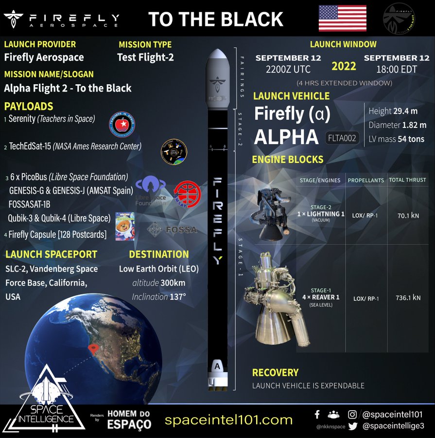 螢火蟲太空公司(Firefly Aerospace)將與 Everyday Astronaut 合作直播 Firefly Alpha 火箭的第二次試飛:「To The Black」任務