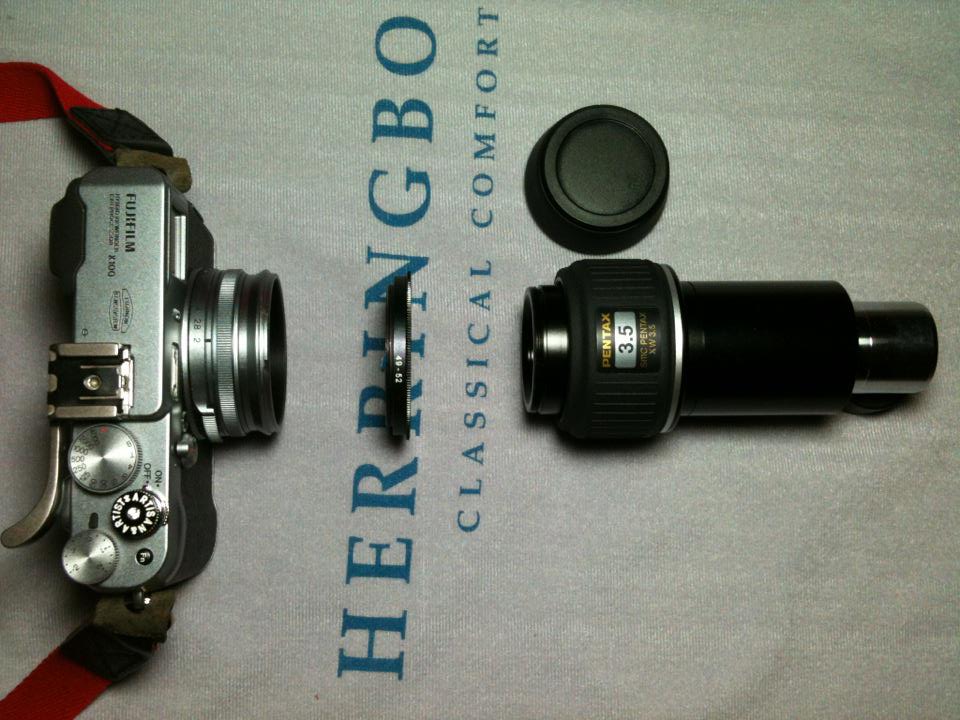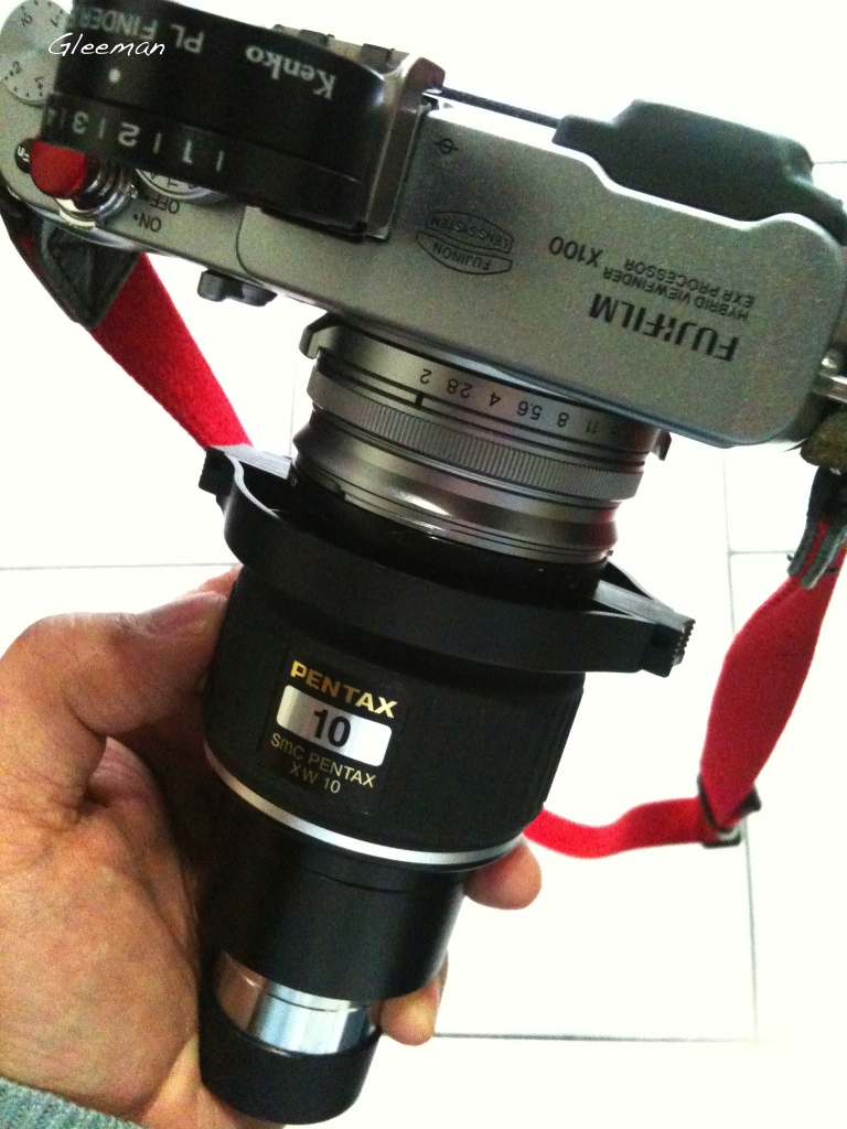 目前我用過的目鏡中,Pentax XW 全系列,Baader Hyperion 全系列,以及Pentax XF Zoom等,目鏡前端都有43mm的牙。所以譬如我的相機套筒是49mm,我就可以用49 轉 43 的相機轉接環(這些轉接環都是規格品,有各種口徑)來接上目鏡。