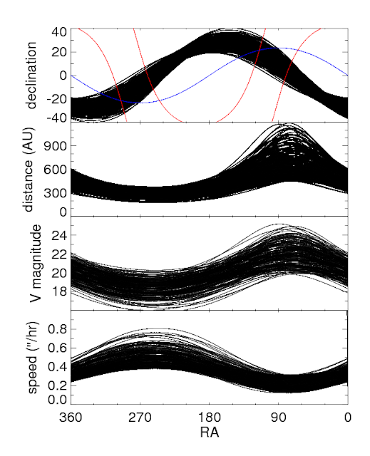 但已发现的十多颗极端海外天体的实际情况却很不相同:它们的轨道半长轴相差极大(介于150天文单位和525天文单位之间),轨道倾角的平均值约为20°,近日点辐角则是–31°,没有任何一个天体接近180°。